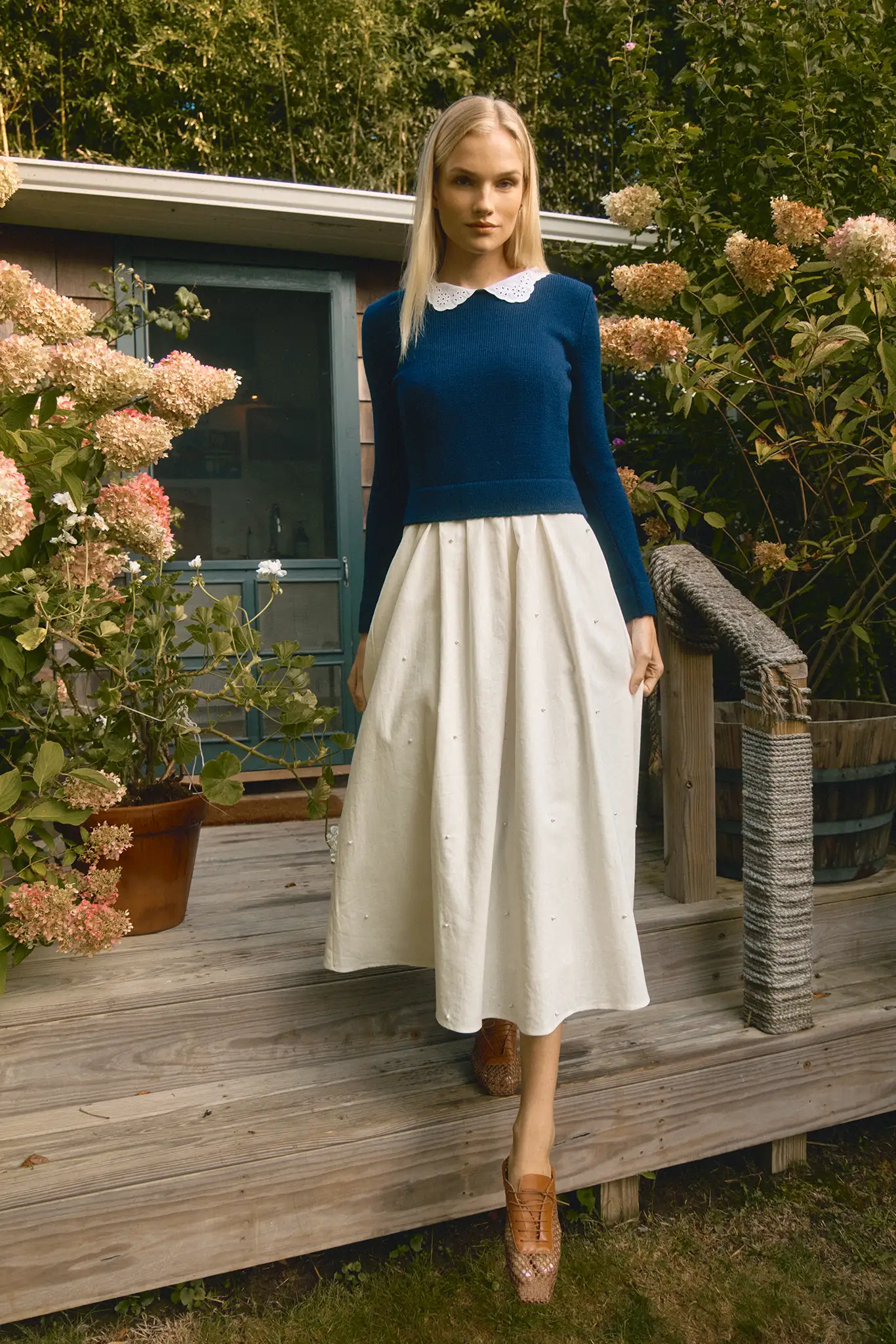 Rivers returns in its most romantic form yet. Crafted from ivory cotton linen and finished with delicate pearl embroidery, this maxi moves with an easy, graceful drape that works from day to evening. Slim spaghetti straps and an optional tie waist let you tailor the silhouette to your liking, while the sweeping skirt adds soft movement. For a wear now styling idea, we love it layered with the Violette Sweater for a textured and cozy finish.